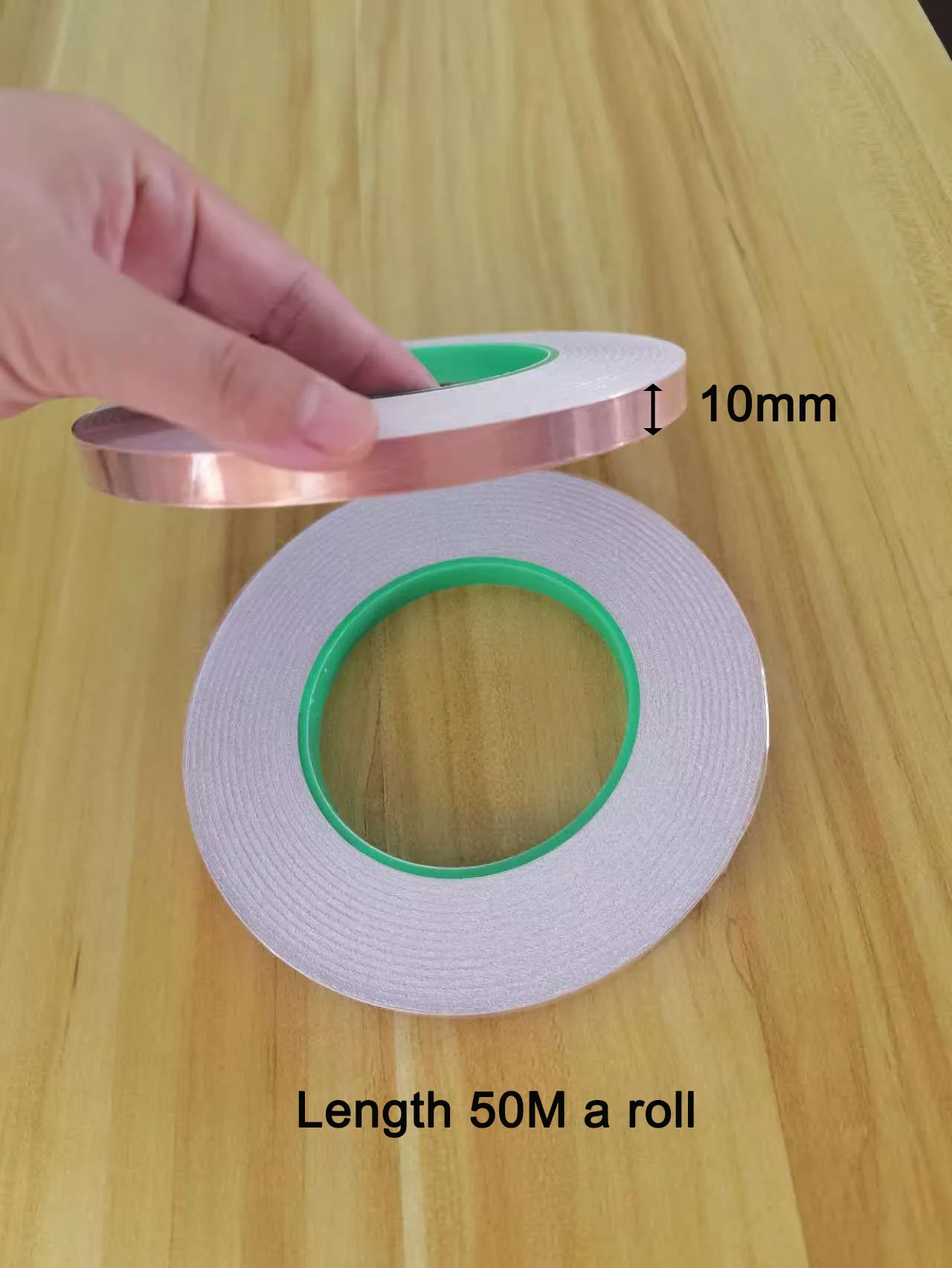 This conductive copper foil tape is a versatile tool for crafting and electrical projects. Measuring 50 meters long, it comes in various widths to suit different needs. Its double-sided conductivity ensures strong performance for both artistic and technical applications. Perfect for stained glass work, it helps create clean solder lines and decorative edges. Ideal for guitar EMI shielding to reduce noise and interference. The tape also works great for DIY electronics, crafts, and home repairs. Its adhesive backing makes application easy and secure on most surfaces. Flexible and durable, it conforms well to curves and corners. The high-quality copper material provides excellent conductivity and corrosion resistance. Whether for art, music, or science projects, this tape delivers precision and reliability.